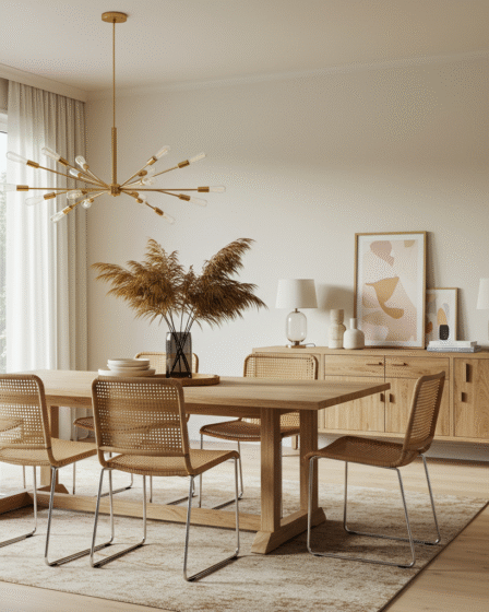Craft a Stunning Dining Room: Blending Rattan, Wood, and Metallic Accents