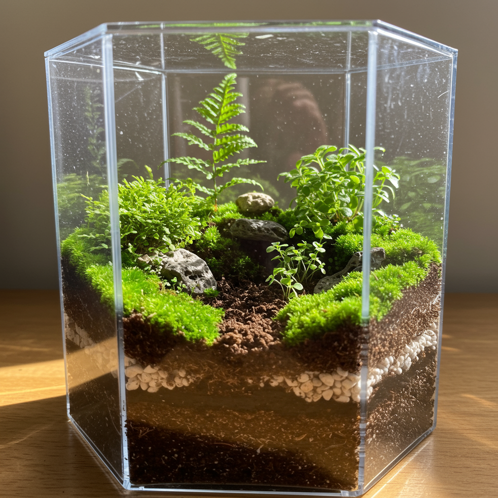 Once you’ve selected your container, it’s time to assemble the layers. Begin with a drainage layer of pebbles or gravel, followed by a thin layer of activated charcoal to prevent mold growth. Next, add a layer of potting mix specifically formulated for terrariums. The type of potting mix will depend on the plants you choose. Now comes the fun part – selecting and planting your miniature greenery! Consider the size and growth habits of your plants, ensuring they won’t overcrowd the terrarium. Small ferns, mosses, and fittonia are excellent choices for closed terrariums, while succulents, air plants, and cacti thrive in open environments.