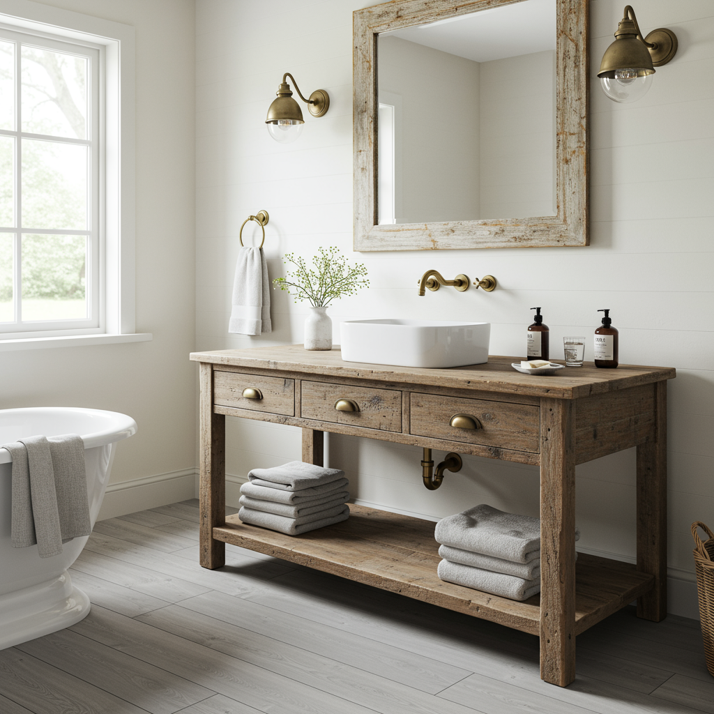 If reclaimed wood isn’t readily available, you can achieve a similar effect with distressed finishes. Many furniture manufacturers offer vanities with a distressed paint or stain, mimicking the look of aged wood. This option provides the farmhouse aesthetic without the sourcing challenges of reclaimed materials. Opt for muted colors like soft white, pale gray, or sage green to enhance the rustic charm.